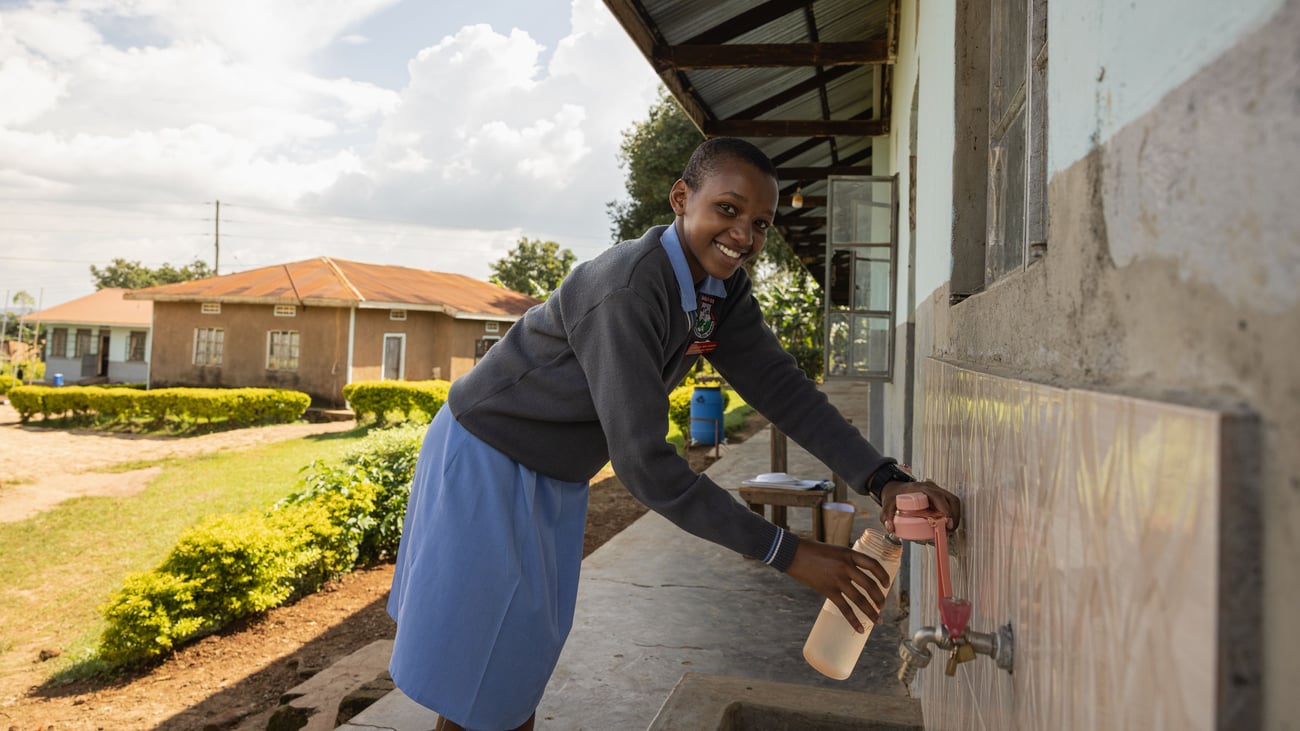 Wie Atuhire Barbrah haben dank des Klimaschutzprojekts in Uganda über tausend weitere Schüler*innen Zugang zu sauberem Trinkwasser erhalten. Ziel des Projekts ist es, Institutionen wie Schulen und Gesundheitszentren mit neuen Technologien zur Trinkwasseraufbereitung auszustatten. Der dadurch reduzierte Verbrauch von nicht erneuerbarem Feuerholz und Holzkohle senkt den CO₂-Ausstoß und verbessert zugleich die Lebensbedingungen sowie die Gesundheit tausender Schüler*innen.